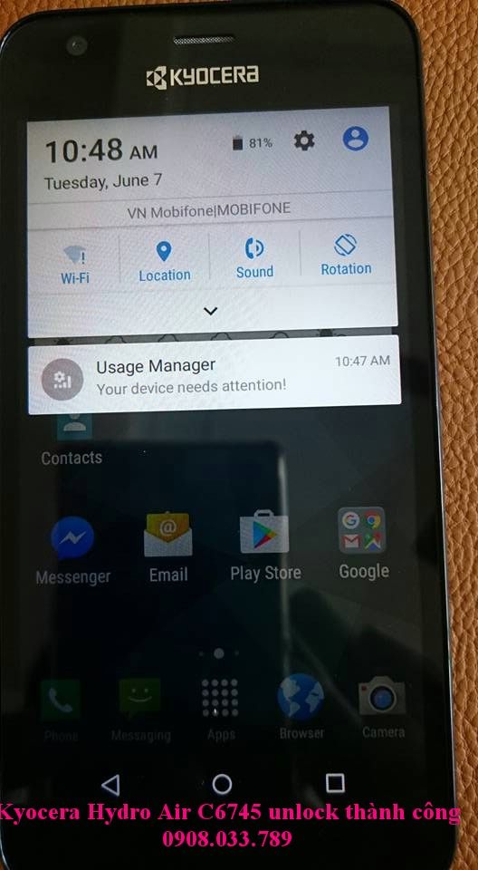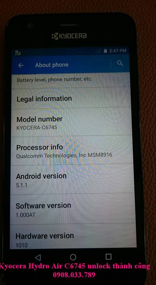Kyocera Hydro Air C6745 at&t unlock thành công